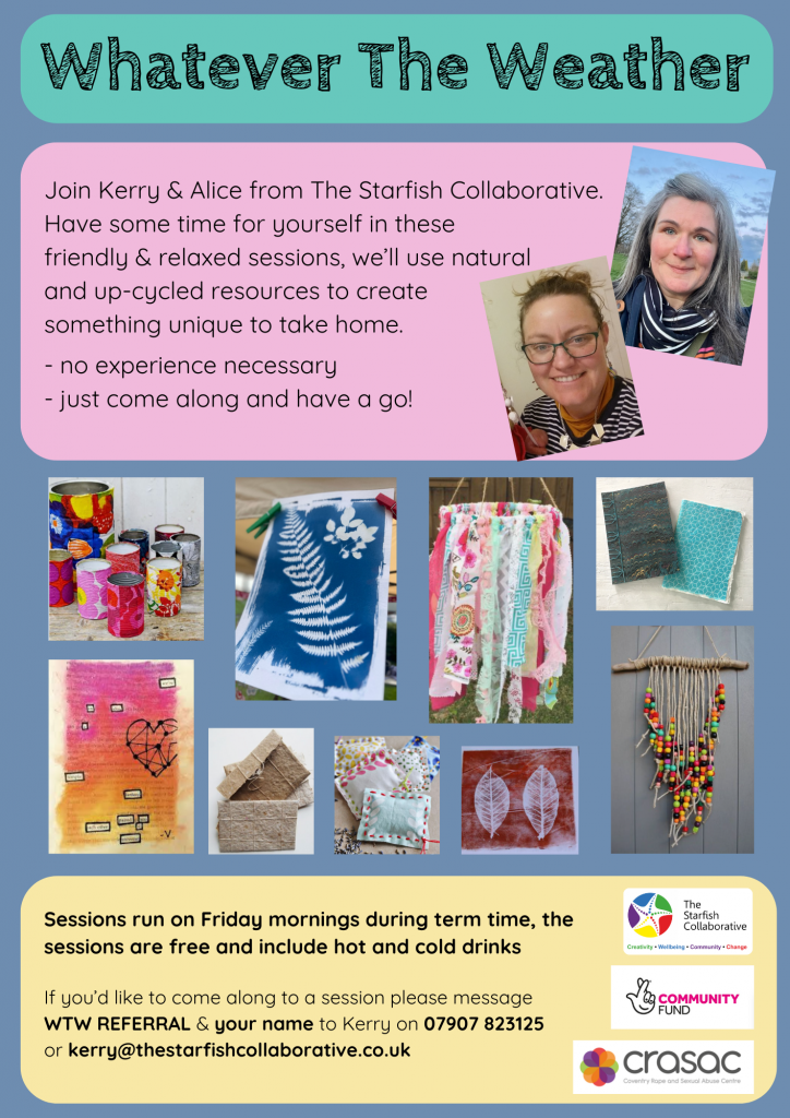 Whatever the Weather is a partnership project with CRASAC (Coventry Rape and Sexual Abuse Centre) that we’ll be delivering throughout 2025.